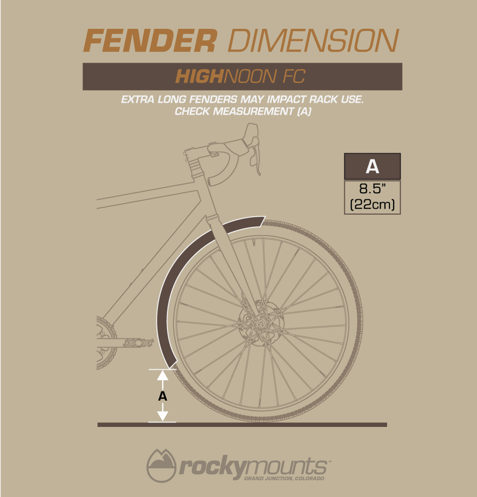 The HighNoon bike carrier is one of the very few that is compatible with bikes featuring fenders right out of the box, no more having to remove your bike fenders before transport if you want a bike rack that secures via the wheels only with no frame contact. The HighNoon FC is compatible with bikes both that have fenders and without fenders, as well as a huge range of types and sizes.